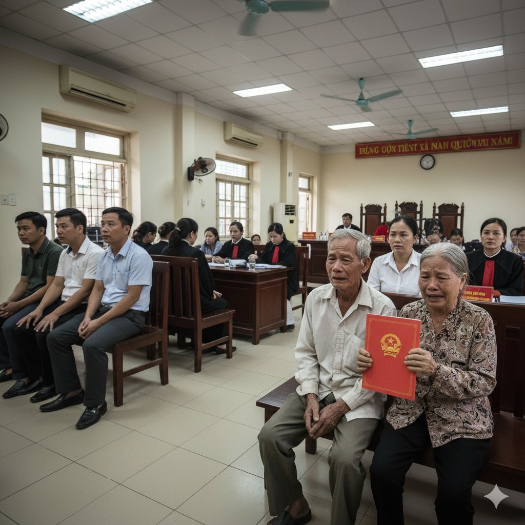 Phòng xử án chật kín người. Hai cụ già tóc bạc ngồi nép vào nhau, đôi mắt đỏ hoe. Trước mặt là 11 người con ruột, chia thành từng phe, mặt đỏ gay cãi vã, tiếng quát tháo vang cả hội trường. Tất cả chỉ vì mảnh đất 1.200m2 của cha mẹ để lại.