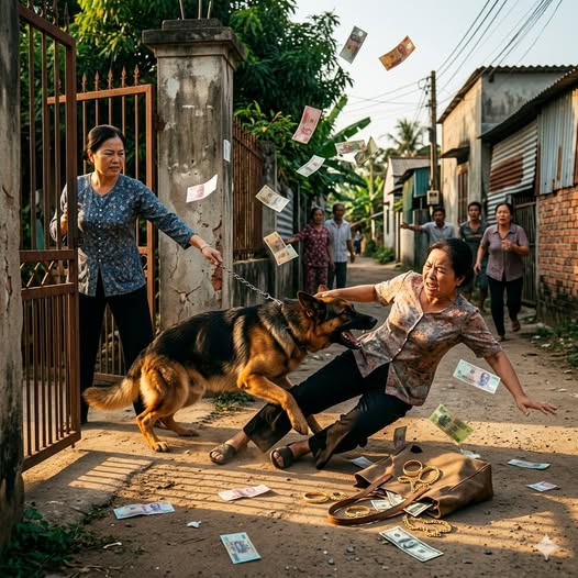 Nhưng đúng lúc Hạnh vừa bước ra khỏi mép cổng nhà tôi, con chó Bec-gie hung dữ nhà hàng xóm – vốn nổi tiếng dữ dằn và hay được thả rông vào giờ chiều – bất ngờ xồ ra. Có lẽ vì thấy Hạnh cúi người lom khom nhặt tiền với động tác vội vã, nó tưởng cô ta định tấn công hay trộm cắp gì đó.