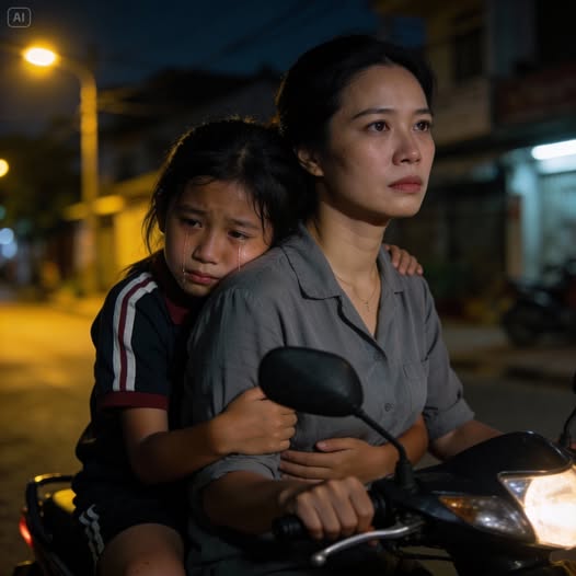 Lần đầu tiên tôi nhận ra điều bất thường là vào một buổi tối Chủ nhật. Tôi vừa dắt xe vào sân thì Thảo My từ trong nhà ngoại chạy ra, mặt đỏ bừng, mắt sưng húp. Con bé lao thẳng lên xe, ôm chặt lưng tôi mà nức nở.