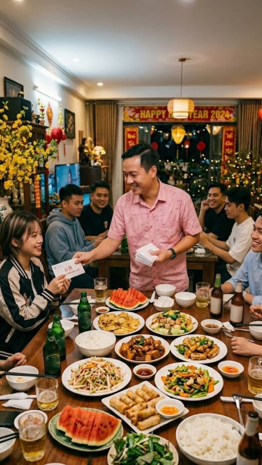 Tuấn bắt đầu phát cho mỗi người… **một phong bì**.