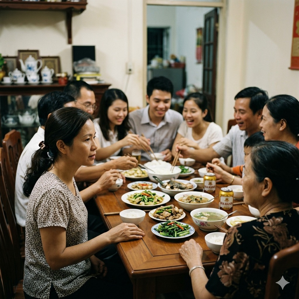 “Mẹ nhớ nêm canh vừa thôi nhé… hôm nay nhiều người lớn tuổi, ăn mặn không tốt.”