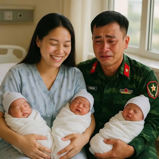 Bức ảnh được chụp ngay sau đó. Tôi đang bế ba đứa con bé bỏng của mình, mắt đẫm lệ, còn vợ tôi — khuôn mặt mệt mỏi nhưng đầy hạnh phúc — mỉm cười khi nhìn tôi ôm lấy điều kỳ diệu mà cô đã một mình giữ lấy suốt 9 tháng.