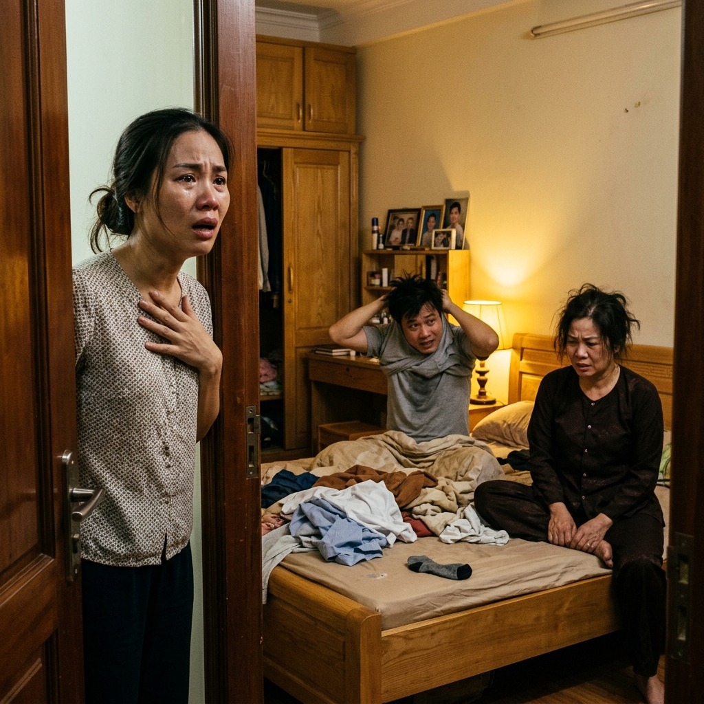 Tim tôi bắt đầu đập nhanh. Ba ngày nay, mẹ không ra khỏi phòng. Không ăn, không uống, không mở cửa cho ai. Chồng tôi – thằng Minh – chỉ lắc đầu bảo “Mẹ đang nghỉ ngơi”. Còn tôi thì biết rõ, “nghỉ ngơi” kiểu gì mà ba ngày liền không một tiếng động.