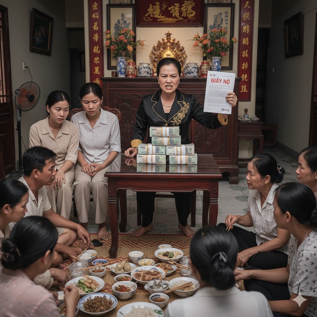 Không khí lặng phắc. Tôi điếng người, ú ớ chẳng biết nói sao, chỉ biết run run chạy vào buồng, lôi ra cái tờ giấy vay tiền đã ký. Mở ra trước mặt cả họ hàng, tôi chết lặng – trên giấy ghi rõ ràng: “Lãi suất 3%/tháng”, chữ ký chị chồng còn nguyên, mà chính tôi lúc vay tin tưởng nên không đọc kỹ, chỉ ký vội.