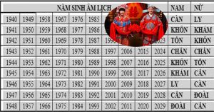 Để biết vợ chồng mình có hợp tuổi hay không, mời mọi người soi năm sinh của mình và nửa kia theo bảng dưới đây: