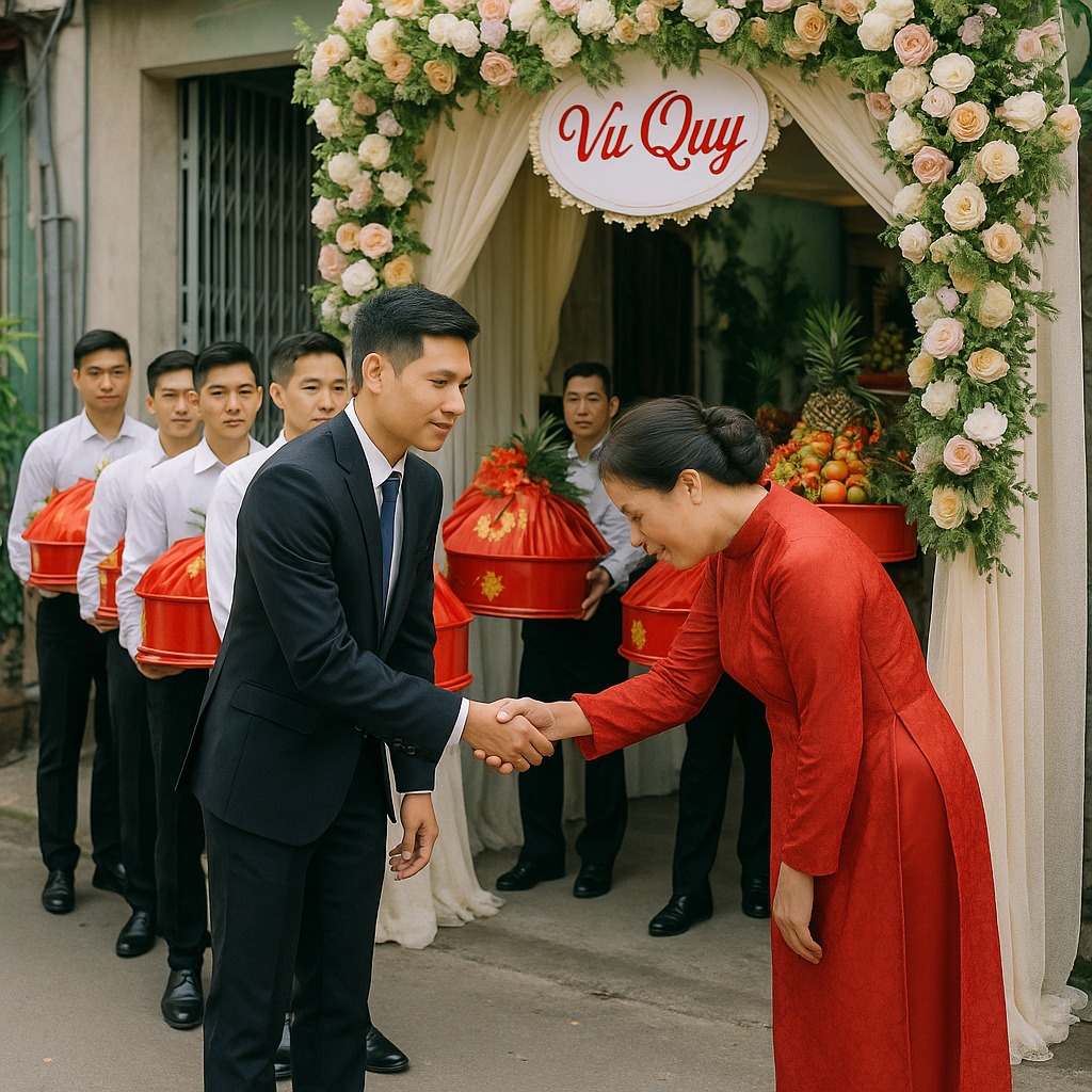 Nhưng sáng hôm đó… 7 chiếc xe bán tải mang logo công ty tôi lần lượt đỗ trước cổng nhà gái, trên xe là: