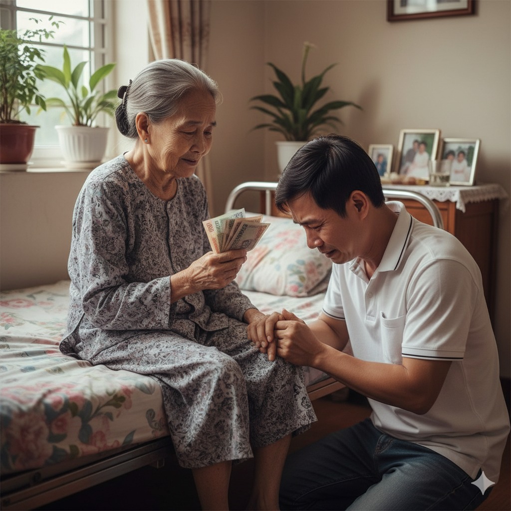 Tôi đứng lặng, tay run lên. Hóa ra mình sợ con cháu dòm ngó, sợ phiền, tự quyết mọi thứ, mà cuối cùng lại bị người ngoài lừa. Nhìn đứa con trai cả quỳ trước mặt, tôi mới thấy lòng mình chùng xuống: điều đáng sợ nhất của tuổi già không phải là nghèo tiền, mà là không còn tin được ai.